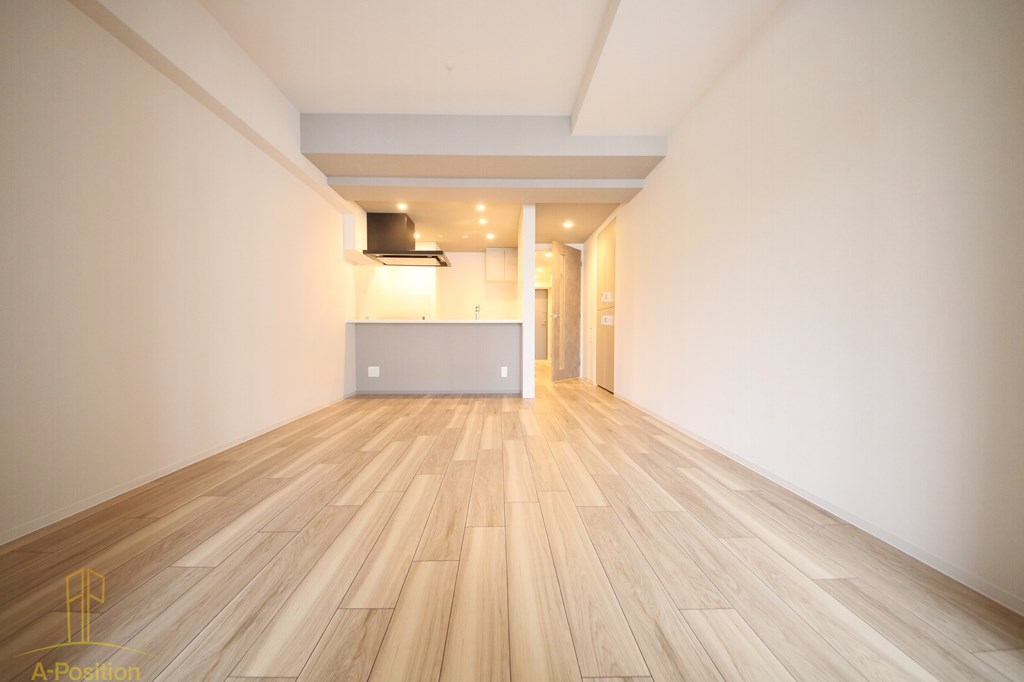 淡い木目のフローリングが室内全体に広がり、ナチュラルで上品な雰囲気を演出。