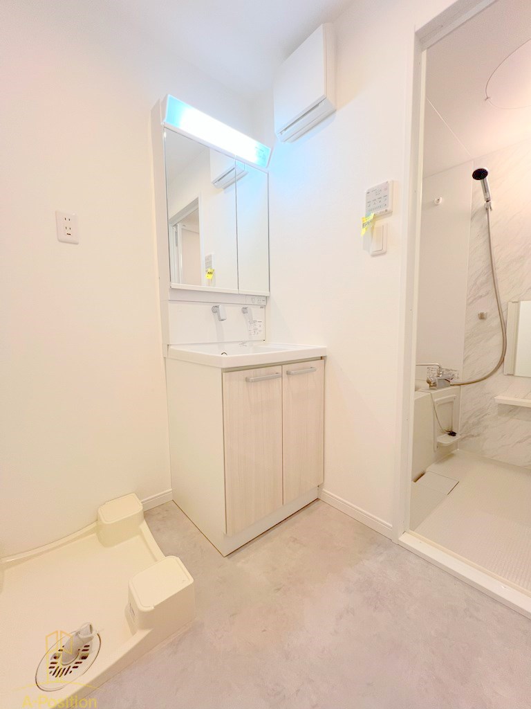 タオルや洗濯物を置ける余裕のある広さがあり、家族での利用にも便利。