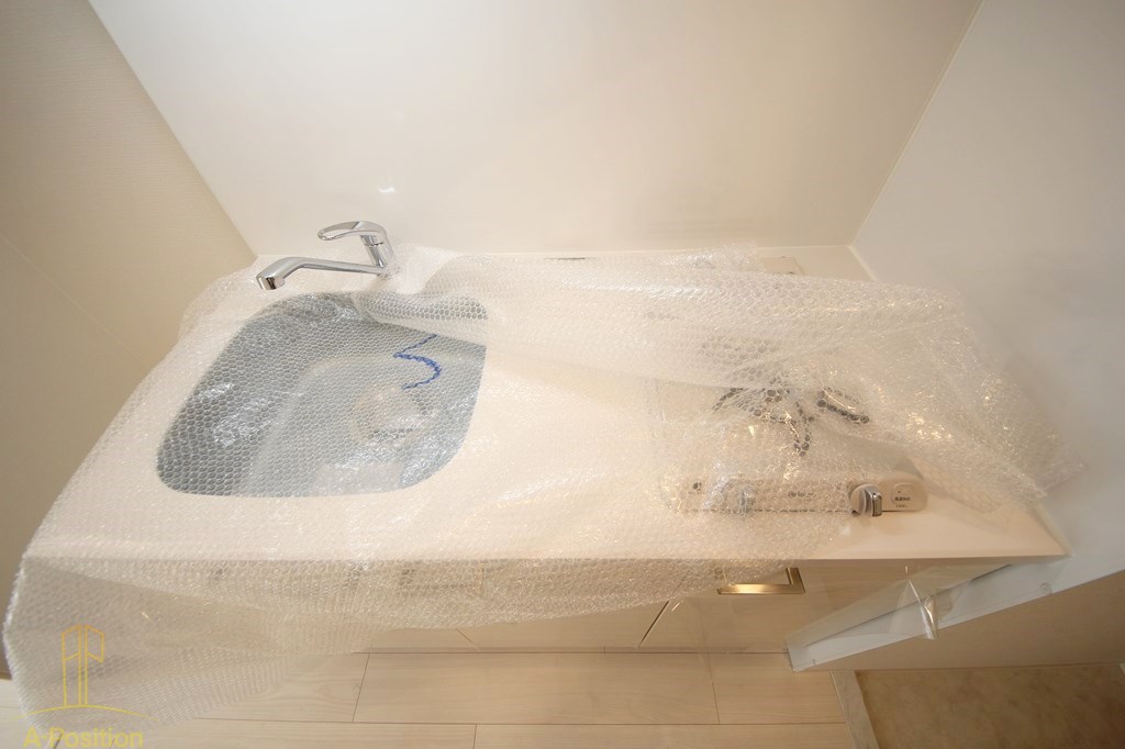 新生活に欠かせないのが、やっぱり「キッチンの使いやすさ」。こちらのお部屋には、2口コンロ付きのシステムキッチンが設置されています。