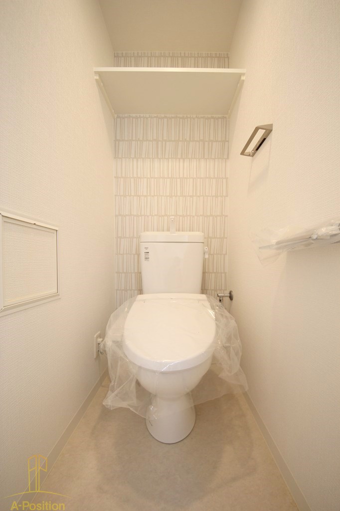 さらに、上部には便利な収納棚が設置されており、トイレットペーパーや掃除用品をすっきりと整理整頓可能。生活感を見せずに、いつでも気持ちよく使えるスペースを保つことができます。