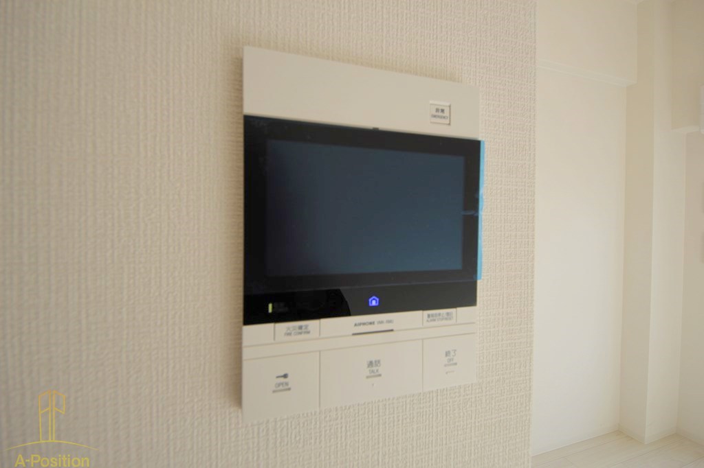 「玄関の訪問者をしっかり確認できるモニター付きインターホン。安心感があるだけでなく、シンプルでスタイリッシュなデザインはお部屋の雰囲気にも馴染みます。来客時の応対もスムーズにできるので、1人暮らしの方にもおすすめの設備です。」
