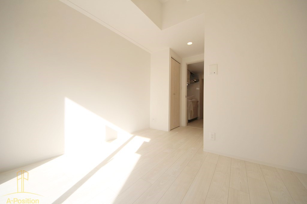 メインの居室は約6.0帖。家具のレイアウトもしやすく、ベッドとソファ、デスクを配置しても余裕を感じられる広さです。バルコニーに面しているため、自然光が差し込み、明るく開放的な雰囲気を楽しめます。