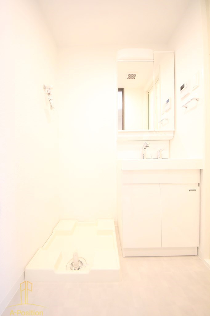 毎日の暮らしを快適にしてくれるのが、こちらの洗面所&脱衣スペースです。ホワイトで統一された明るいデザインは、すっきりとした印象を与え、清潔感を大切にしたい方にぴったり。