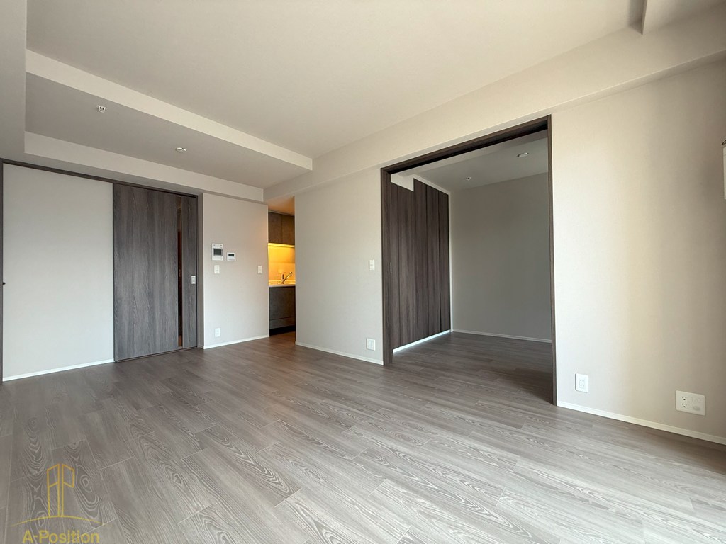 12.9帖の広々としたリビングは、ソファやテレビボードを置いてもゆとりのある広さ。大きな窓から光が入り、明るく開放的な空間です。隣接する5帖の洋室は寝室やワークルームにぴったりで、動線もスムーズ。生活のしやすさを感じられる間取り設計になっています。