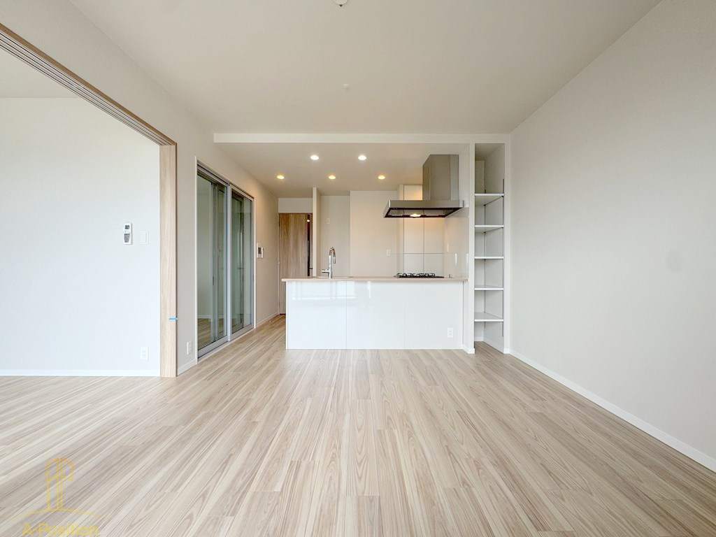 新築ならではの清潔感と快適さが魅力の2SLDK賃貸マンションです。リビングは明るく開放的で、大きな窓からは眺望も楽しめます。キッチンは3口コンロとグリル、食洗器を備えたシステムキッチンで使いやすく、浴室には追い焚き機能と浴室乾燥機が付いており、日々の生活を快適にサポート。三面鏡付きの独立洗面台やランドリースペースも機能的で、大容量のクローゼットなど収納も充実しています。新しい暮らしを始めるのにぴったりなお部屋です。