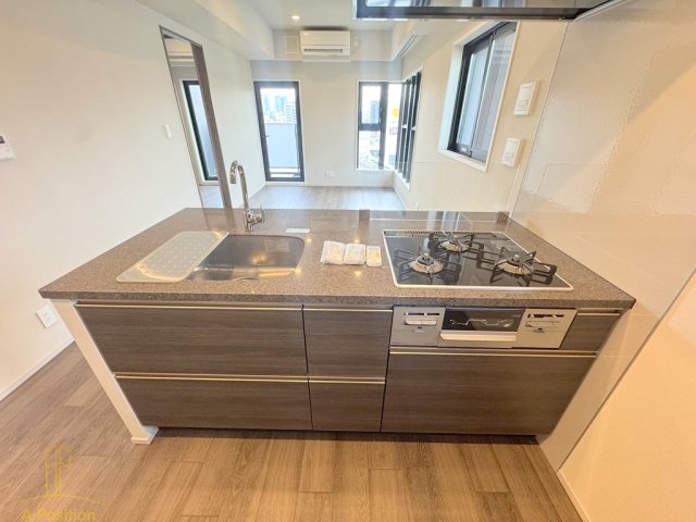 スタイリッシュで機能性に優れたシステムキッチンが目を引く一枚。