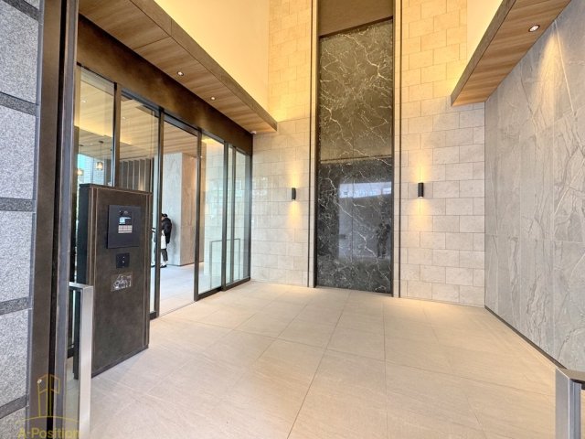 シックなグレー調の壁と間接照明がスタイリッシュな空間を演出し、高級感のあるホテルライクな印象に。壁面には宅配ボックスも完備されており、不在時でも荷物の受け取りが可能です。