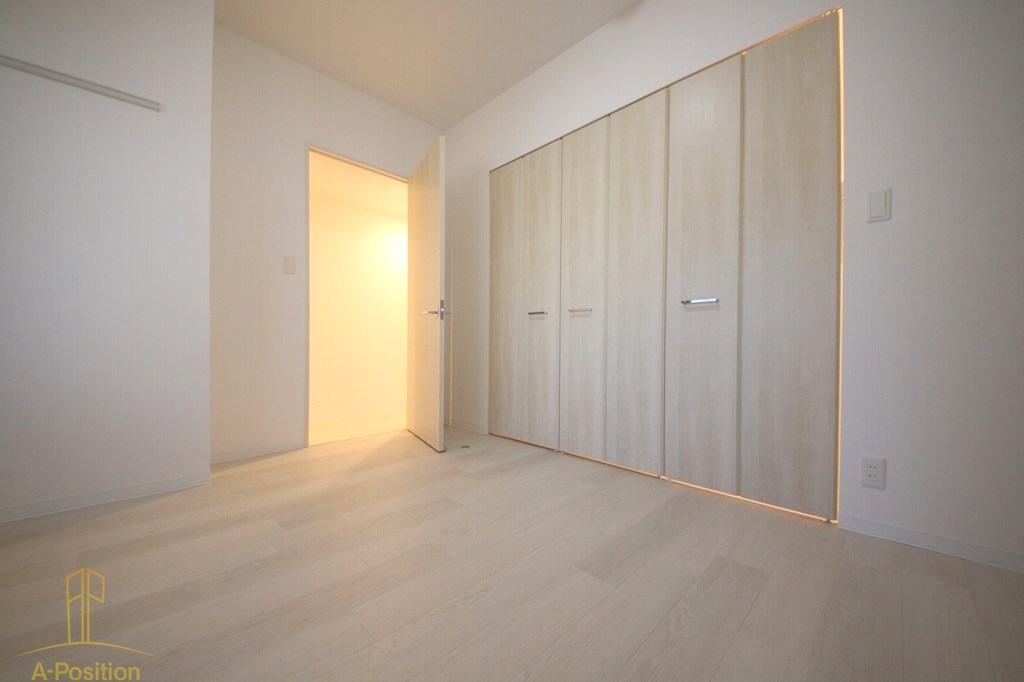 主寝室にちょうど良い広さで、ベッドを置いても余裕のある空間。さらに ウォークインクローゼット が付いているので、洋服や季節物の収納もスッキリ。