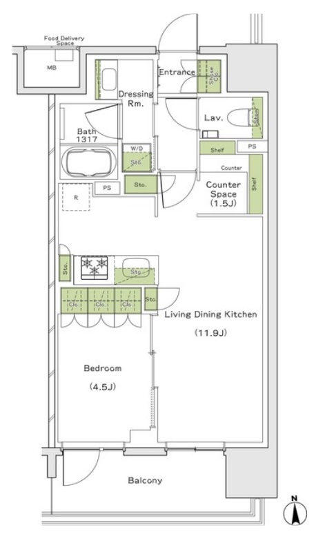 さらに、リビング横の「カウンタースペース(1.5帖)」はワークデスクとしても最適。リモートワークや読書時間など、自分だけの“こもり空間”として活用できるのも嬉しいポイントです。