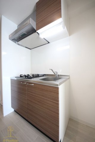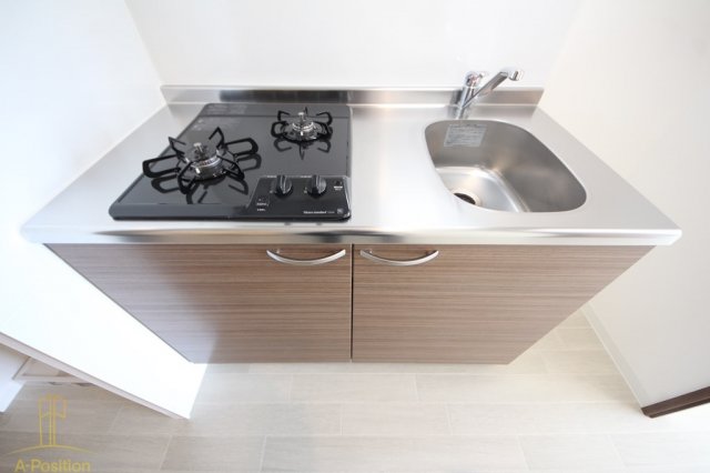 シンプルながらスタイリッシュなシステムキッチンには、2口ガスコンロを採用。自炊派の方でも同時調理ができ、毎日の料理がスムーズに進みます。