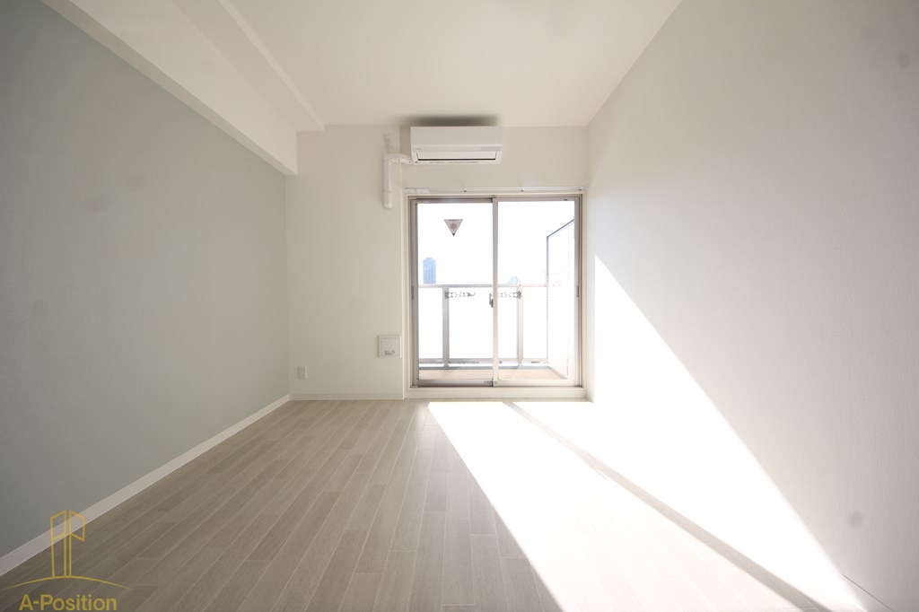 上品な色合いのフローリングに、やわらかな光が差し込む「エグゼ天神橋」の洋室。