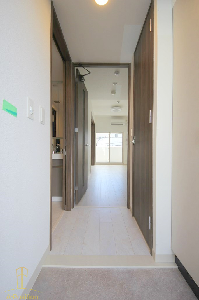 玄関を入るとすぐにトイレや洗面室があり、生活動線がしっかり考えられた設計。パウダールームからバスルームまでが一直線につながり、忙しい朝の支度もスムーズに行えます。