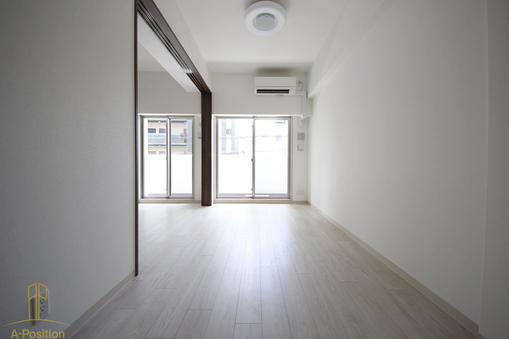 大きな窓から差し込む自然光が、部屋全体に心地よい開放感を与えてくれます。床はナチュラルなフローリングで統一され、どんなインテリアとも相性抜群。シンプルながらも上質な雰囲気を演出しています。