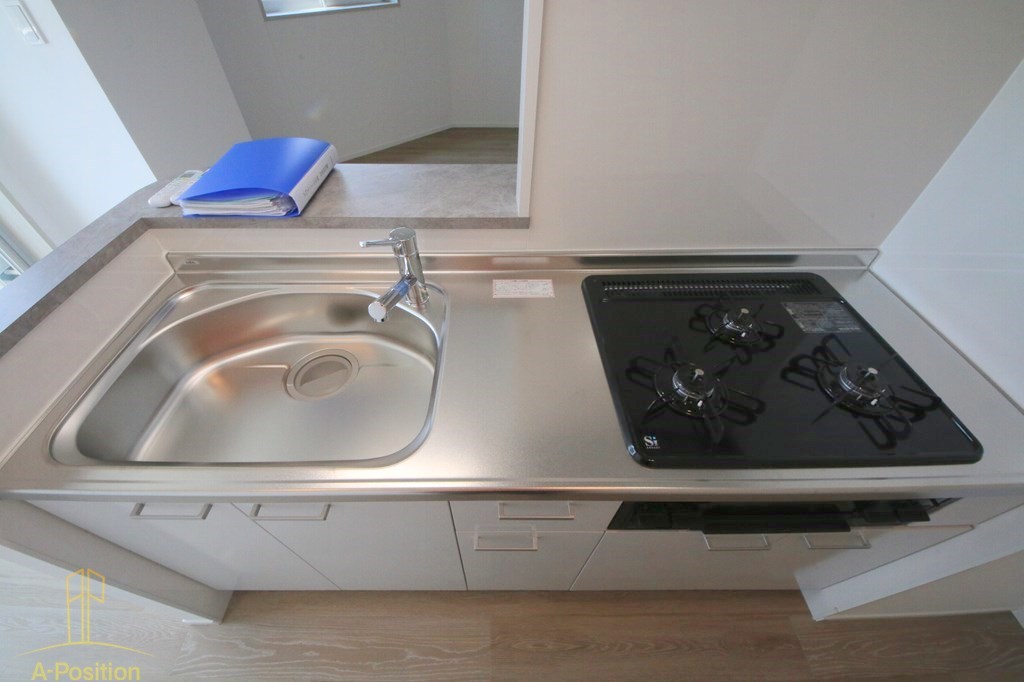 3口ガスコンロとグリルを搭載し、同時調理もスムーズ。