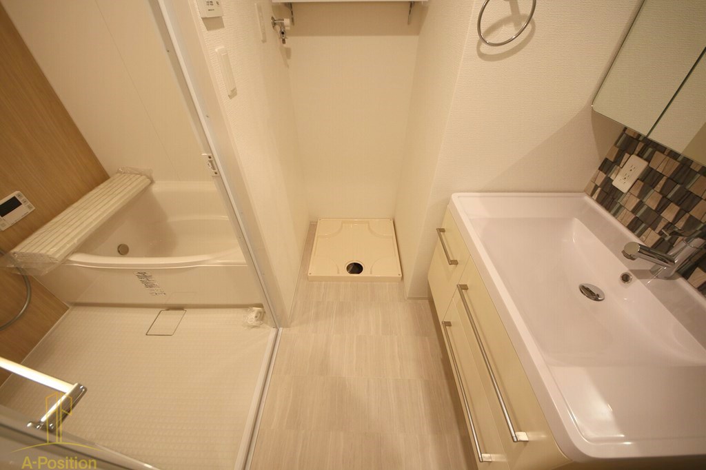 脱衣所とバスルームが隣接しているため、朝の準備やお風呂上がりのケアもスムーズ。