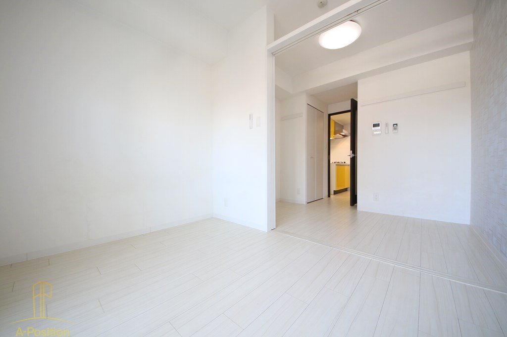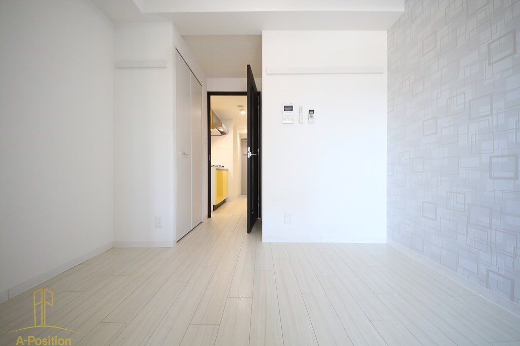 奥にはキッチンへ続く動線がまっすぐ伸びており、生活しやすいレイアウト。クローゼットも備わっているため、洋服や荷物をきちんとしまえて、お部屋を広くスッキリ使えます。