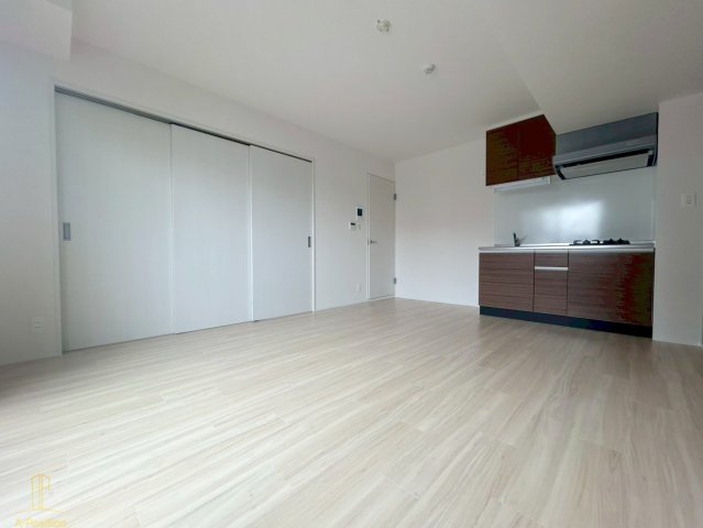 キッチンは壁付けタイプのため、リビング側に無駄な凹凸がなく、家具レイアウトの自由度が高い点もポイント。