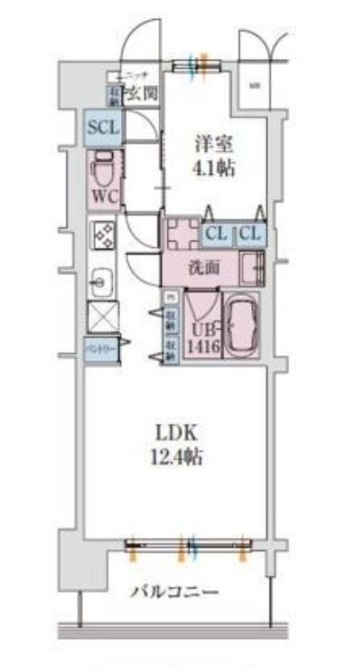 1LDKでありながら収納不足を感じにくく、荷物が多い方や2人入居の方にも安心できる収納設計です。