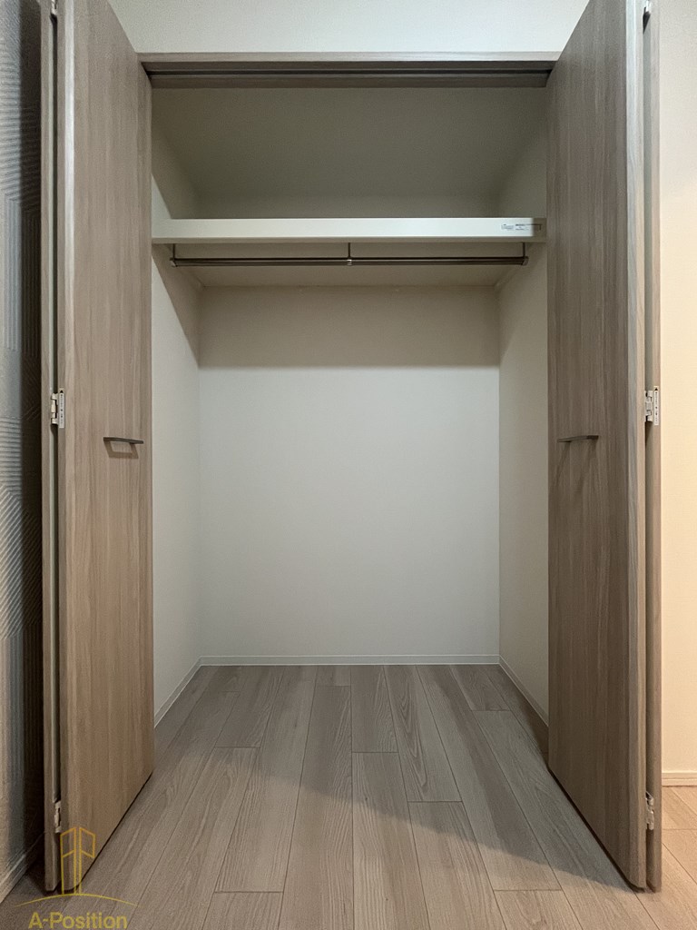 ハンガーパイプ付きのため、シャツやコート類もシワを気にせず収納でき、主寝室として非常に使い勝手の良い仕様となっています。