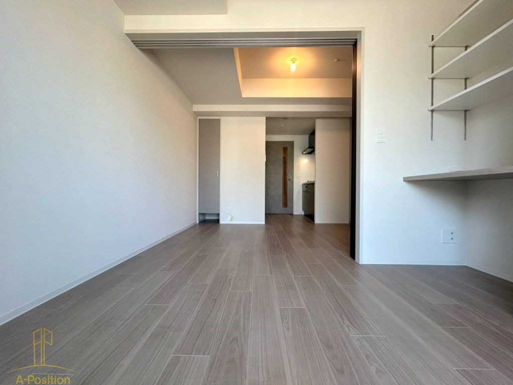 居室はベッドやデスクを配置しても圧迫感が出にくく、在宅ワークをされる方にも使いやすい広さを確保。ダイニングキッチン側も動線が考えられており、冷蔵庫や収納家具の配置がしやすく、日々の生活がスムーズに送れる設計となっています。