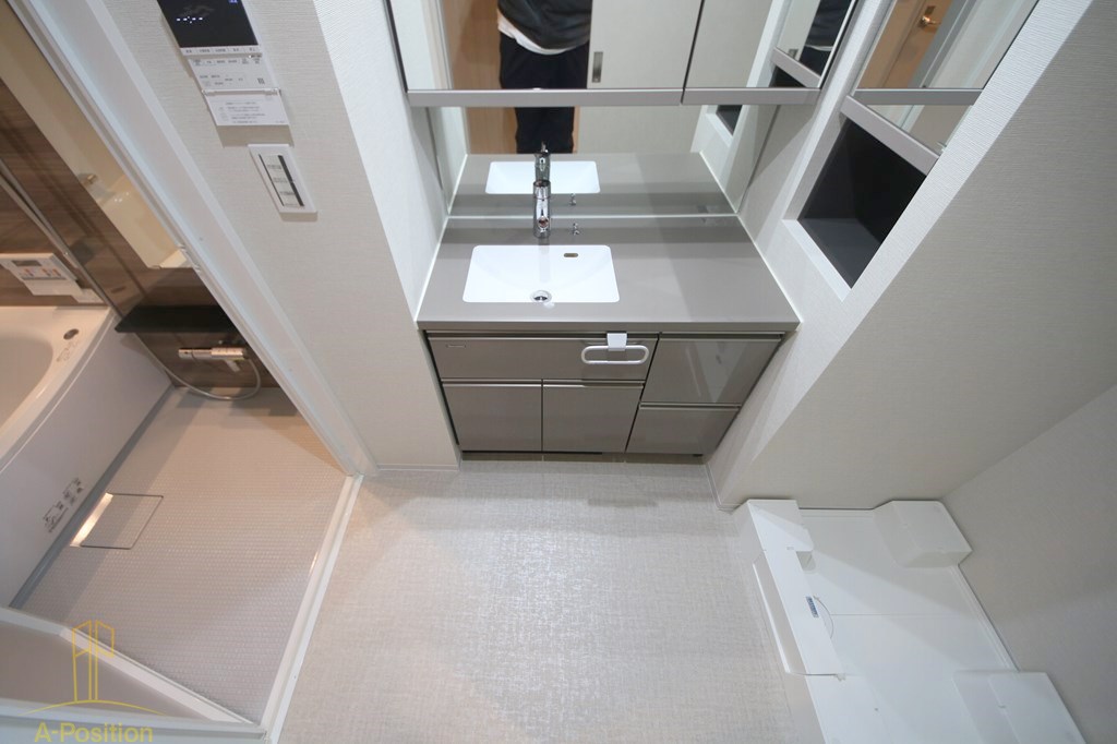ソルティア大阪同心の脱衣所は、限られたスペースを有効活用し、日常動作がスムーズに行えるよう配慮された設計です。